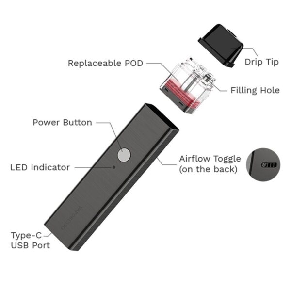 دستگاهی کوچک، زیبا و قابل حمل است که با بدنه فلزی و براق خود چشم مخاطب را به خود خیره میکند. این پادسیستم دارای باتری داخلی با ظرفیت 800 میلی آمپر بر ساعت است که از طریق پورت USB Type-C و در عرض 45 دقیقه کاملاً شارژ میشود. ویپرسو از چیپست انحصاری خود به نام آکسون در پاد اکسراس استفاده کرده که باعث هوشمندی آن شده است. همچنین به لطف این چیپست، مدار های محافظ فوق العاده ای هم در اکسراس تعبیه شده که به طولانی تر شدن عمر مفید دستگاه و کویل آن کمک شایان ذکری میکند.